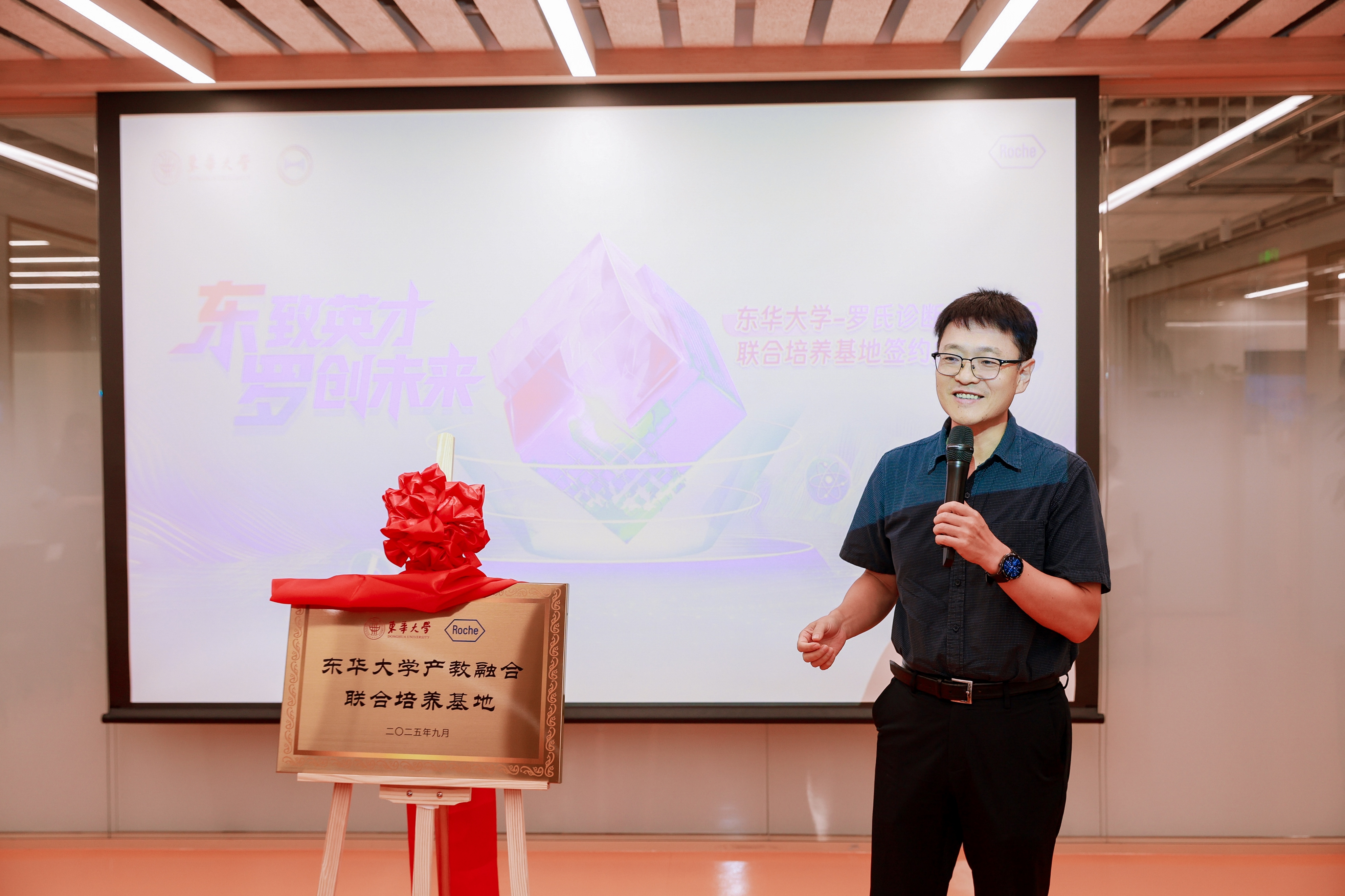 10月18日,东华大学教务处处长杜明、生物与医学工程学院副院长陈婷率领师生代表共计80余人,赴罗氏诊断中国技术创新中心参加“东华大学-罗氏诊断产教融合联合培养基地”签约挂牌仪式。罗氏诊断副总裁-客户服务部辛幸谊,罗氏诊断全国技术培训与发展总监、技术创新中心负责人陈磊等企业高管出席活动。